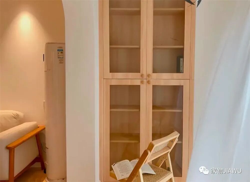 一组木色的小柜子,既填补了冗余空间,又提供了额外收纳功能,原木色甚至还成为了空间内的点睛之笔,真的是非常漂亮了!