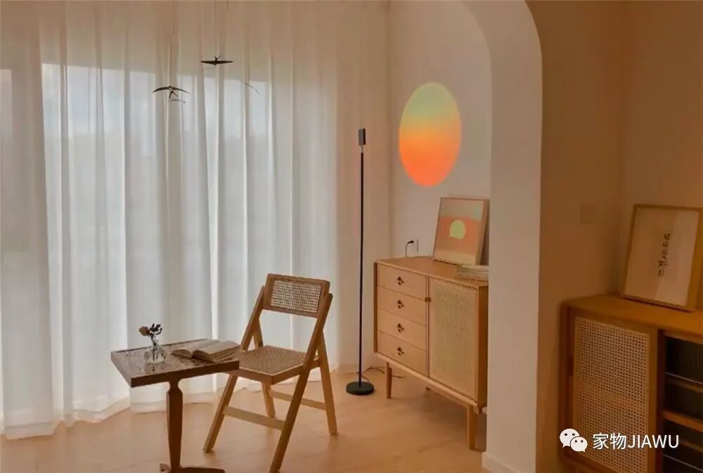 而后面的收纳柜和落日灯,更是提升了这种慵懒惬意的居家氛围。