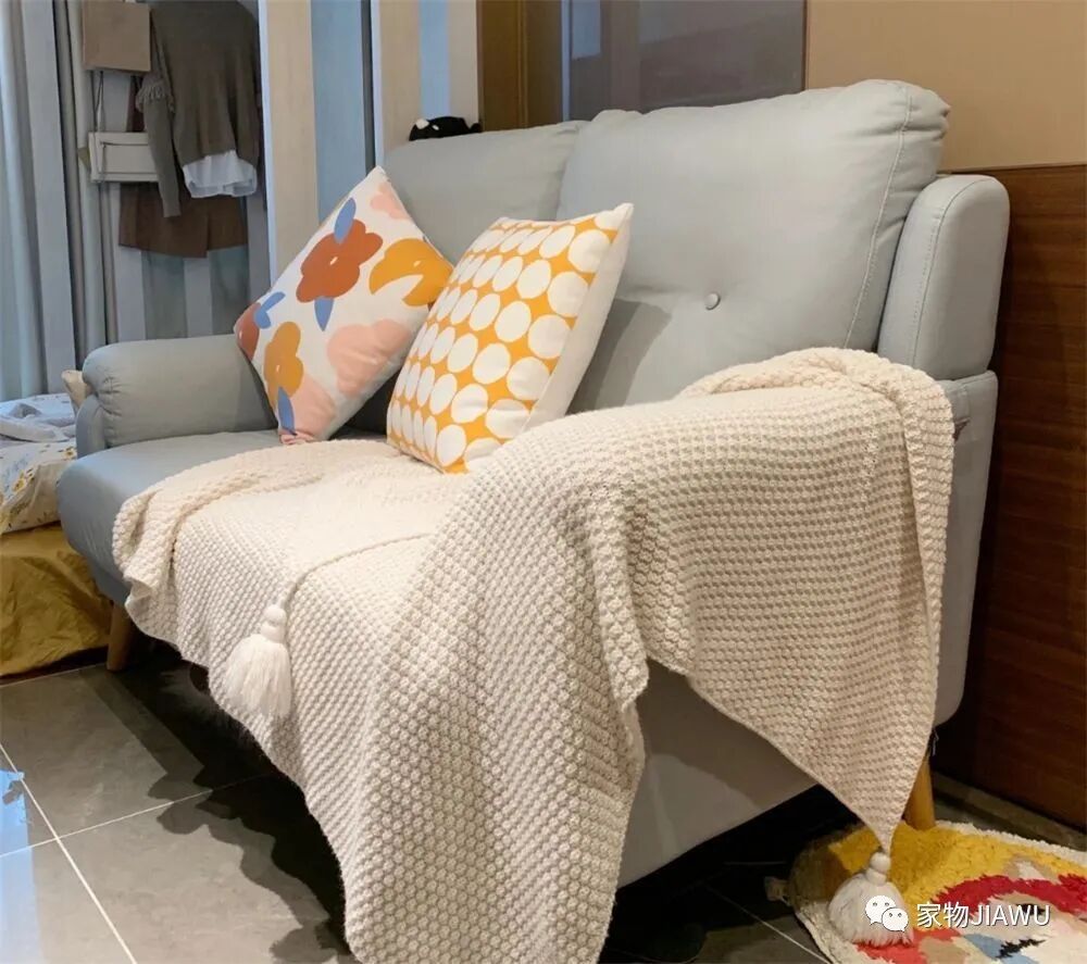 我个人认为,虽然房子很小,但这样一张双人位沙发的作用还是挺重要的,毕竟平日里也有个随时能坐下的地方,比直接坐在床上也要舒服不少。