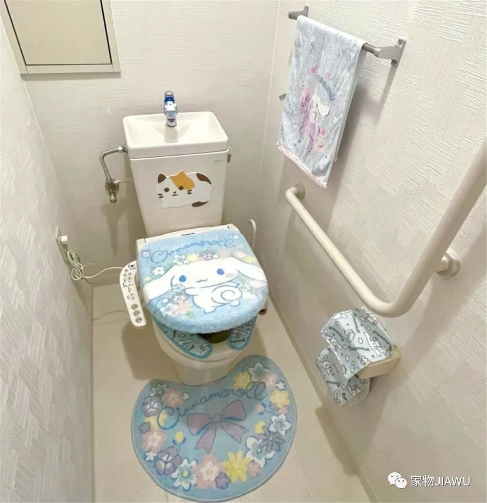 姑娘为了给卫生间增添几分活力,特意用卡通图案的地垫和马桶垫进行装饰,看上去真的是少女心满满!