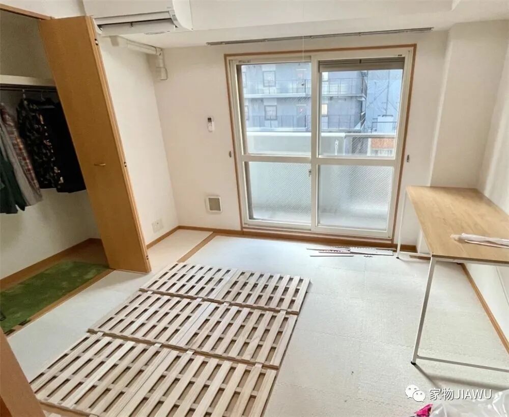 这间蜗居在未装饰之前,内部的硬装条件其实还算不错,里面白色的墙面干干净净,木地板和壁橱门虽然显得有些老旧,但还算完整结实,看上去倒是挺不错。