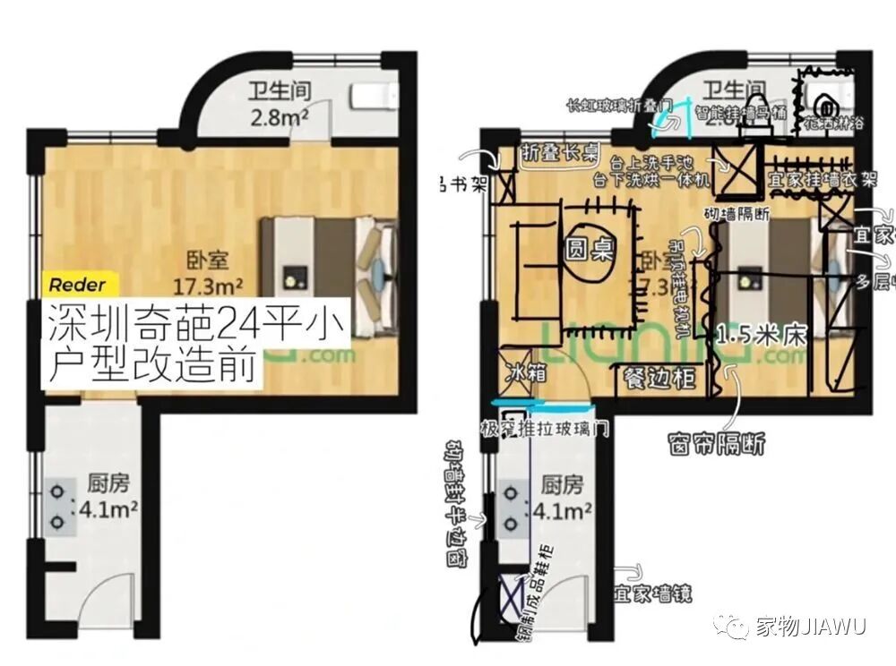 这不,前段时间我就看到一位深圳姑娘刚买下的小房子——这间蜗居只有24㎡,却容纳下了客厅、餐厅、厨房、卧室、卫生间和浴室,空间利用也是服了!