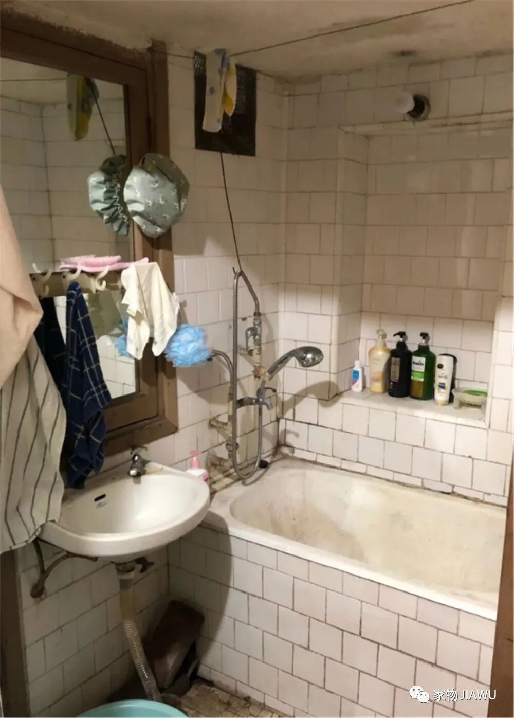 墙砖和瓷砖也早已失去了光泽,可以说卫生间,是让这位姑娘最心塞的一处空间了,当然,改造时也下了大功夫。