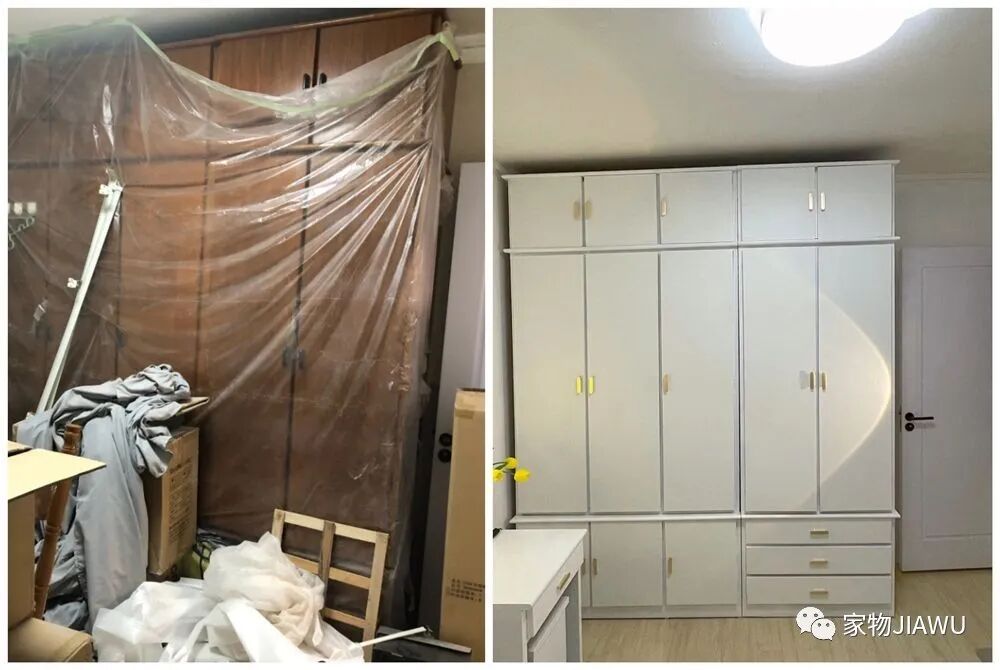 除了全屋统一的木地板和墙面 刷漆以外,卧室基本上就更换了书桌和床铺两件家具,之前的旧衣柜通过贴膜的方式,变成了一组崭新的大衣柜,看起来还挺漂亮。