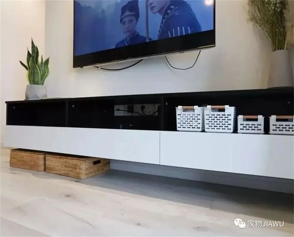 再有就是电视机下方的插座,可以倒着装,如果高度合适的话,也能一定程度上隐藏起电线来,而下面的机顶盒、路由器之类的,则可以正着装。