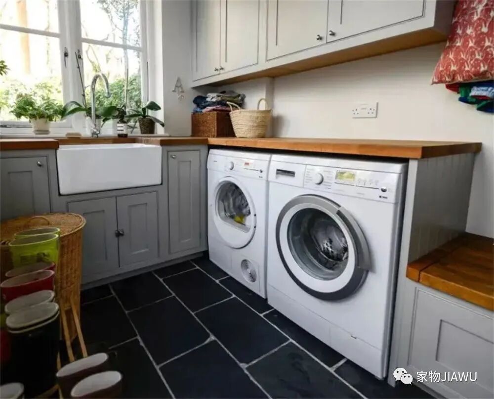 洗衣机插座,可以在离地距离合适的位置横着装,插上插头以后,看起来也会更加干净整洁一些~
