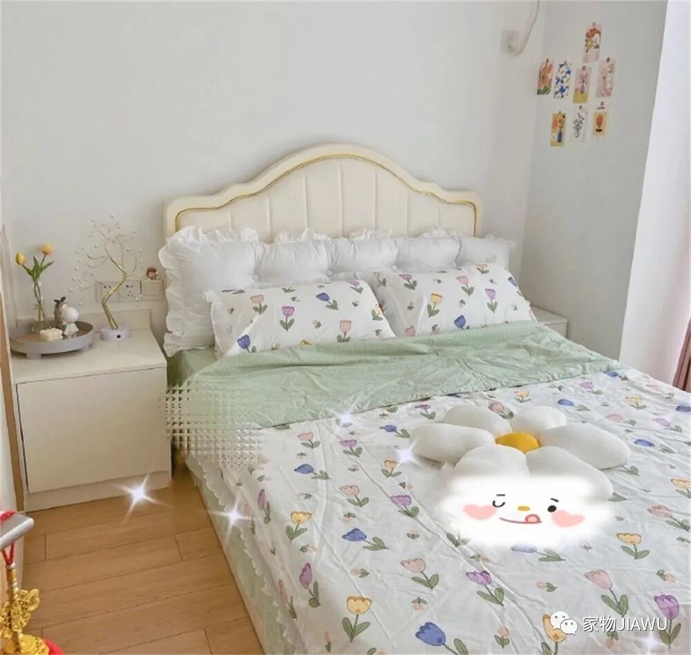 最后,家里的卧室可以说是少女心满满,花朵图案的床品,给这间小卧室增添了些许明快、活泼的氛围,看起来非常不错。