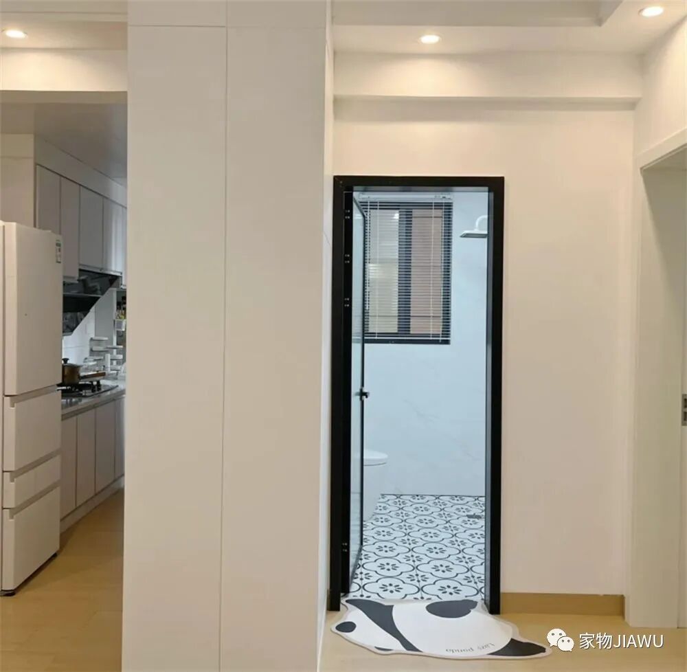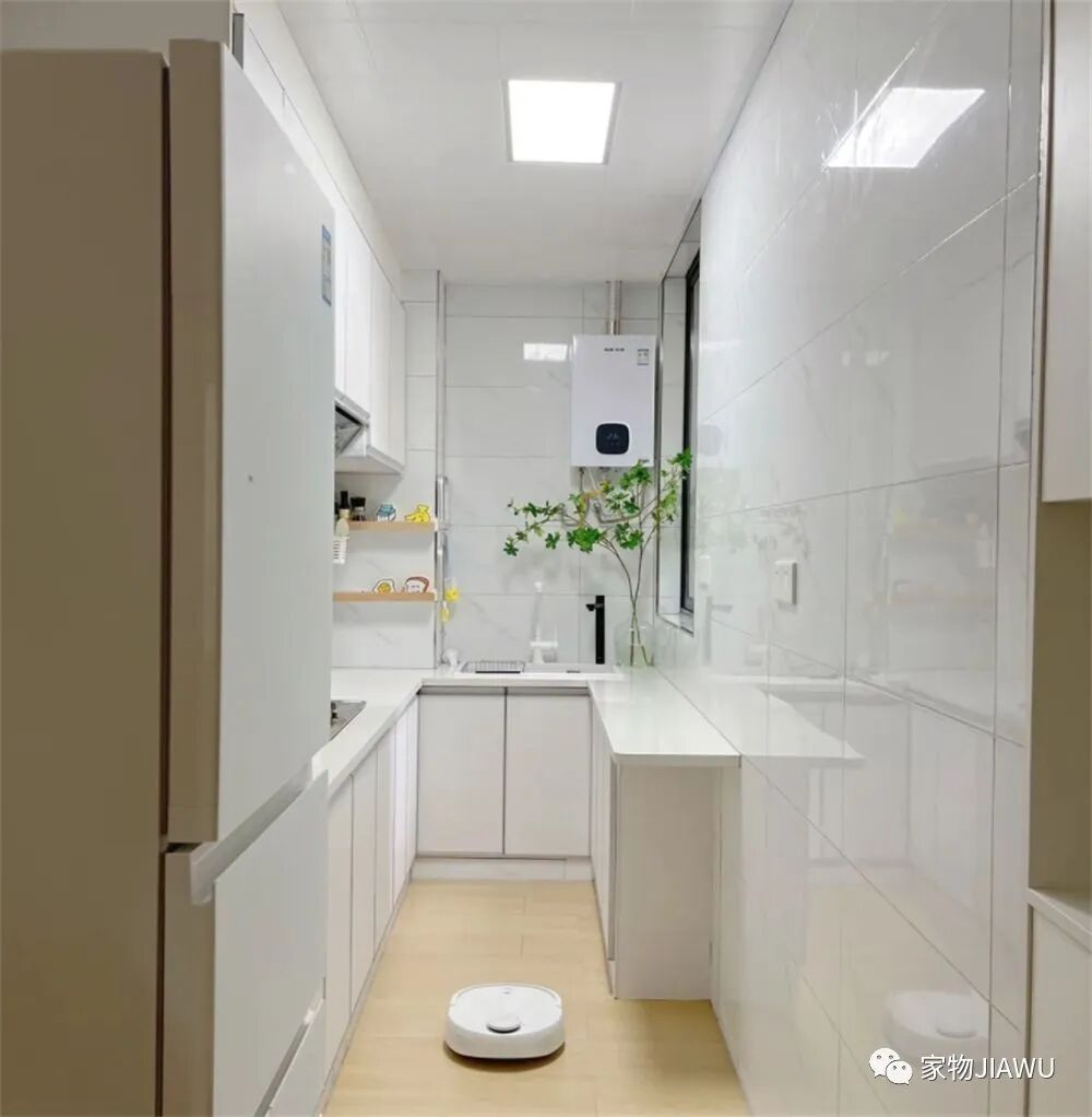 厨房和卫生间的面积就要小一些了,尤其是家里的厨房,空间狭长,很难完美利用起来,稍有不慎就会影响日常的下厨和烹饪,但对于这些,这位老哥也有解决办法。