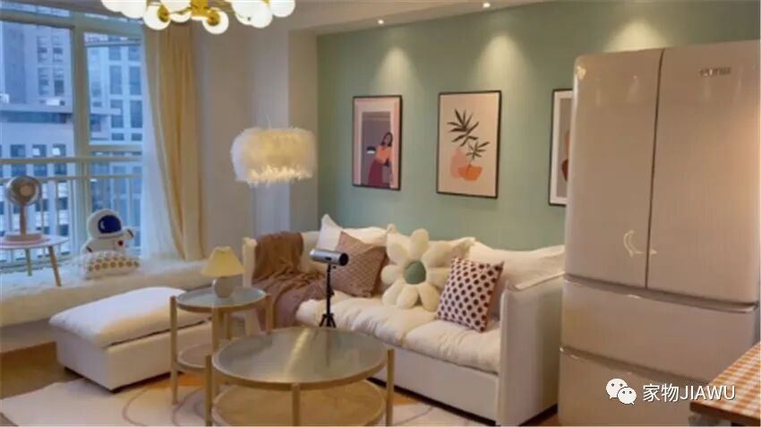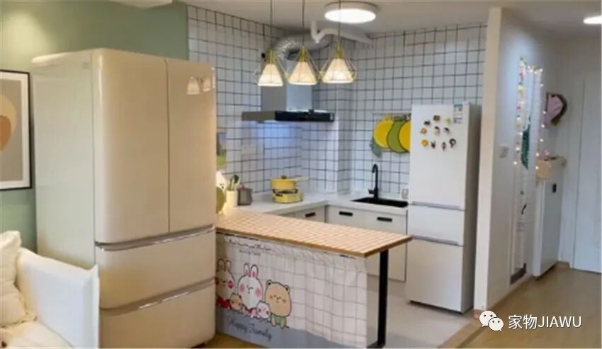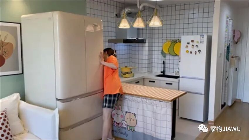 把新买来的冰箱放到沙发和厨房吧台中间,你别说,看上去真的是要比以前气派和明快许多!