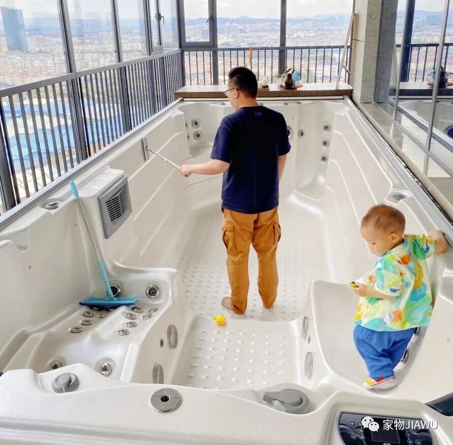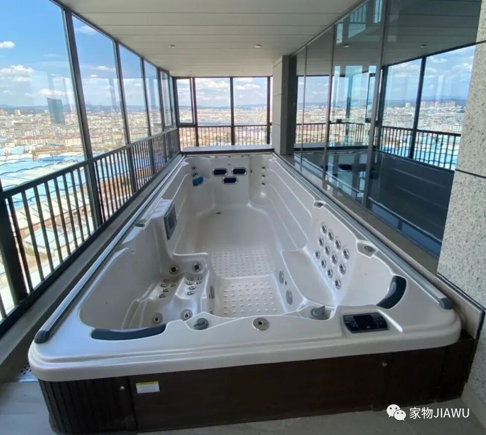 一般来说,泳池是很多别墅户型的标配,但在高层中生活,想要把泳池搬到阳台上,就有些困难了……