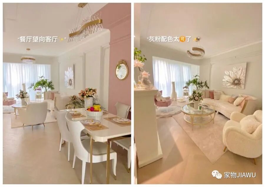 这个小家的面积差不多有80㎡左右,通过这种粉色系装饰后,焕发出了别样的生机和质感!