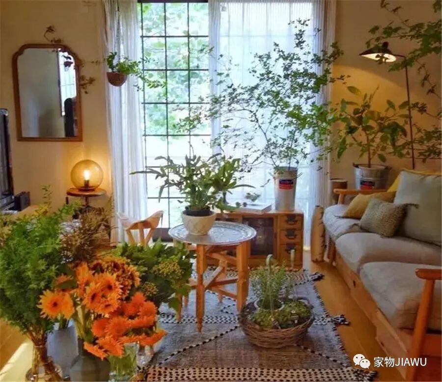 其实一进入家里的客厅,你就会发现这种“绿植风”的美感。