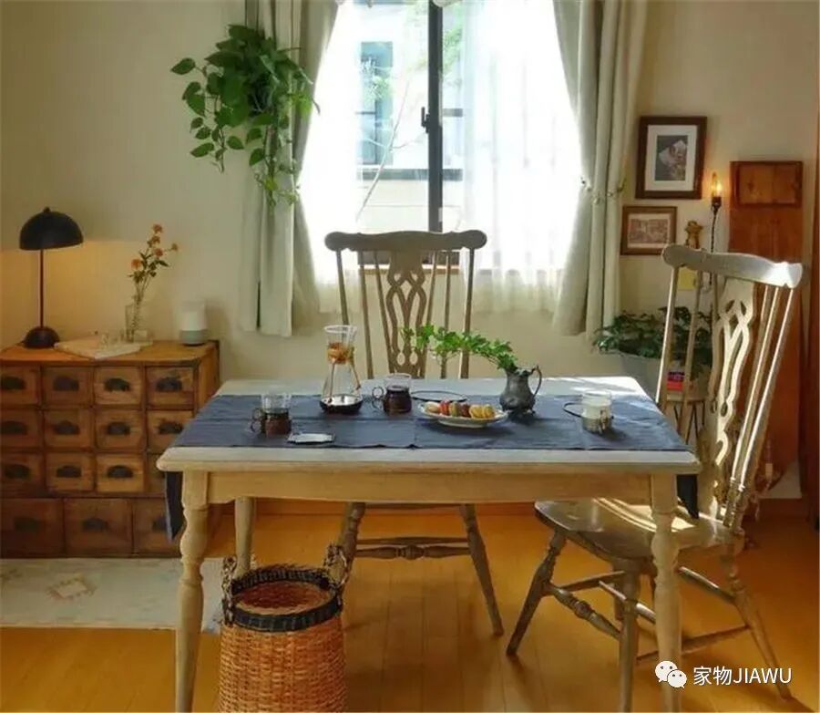 原木高背的餐椅搭配长桌,也很有田园风的那种质朴美感。