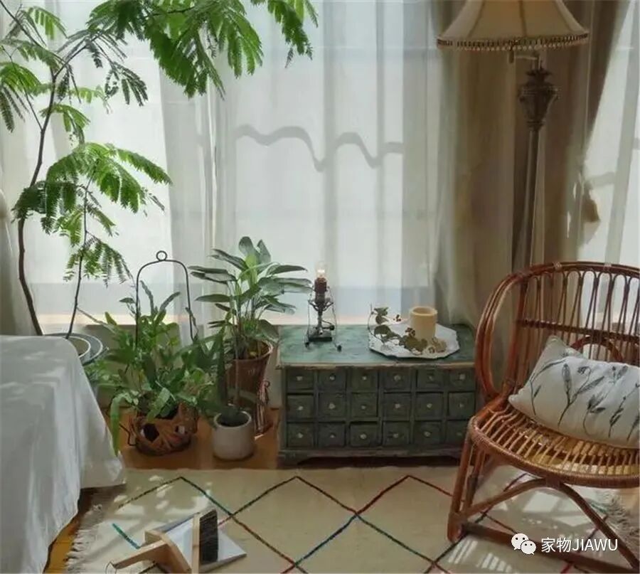 在这些植物的环绕中,摆放上一张摇椅,也可以坐在这里享受一下午后的美好时光,让生活更有温度。