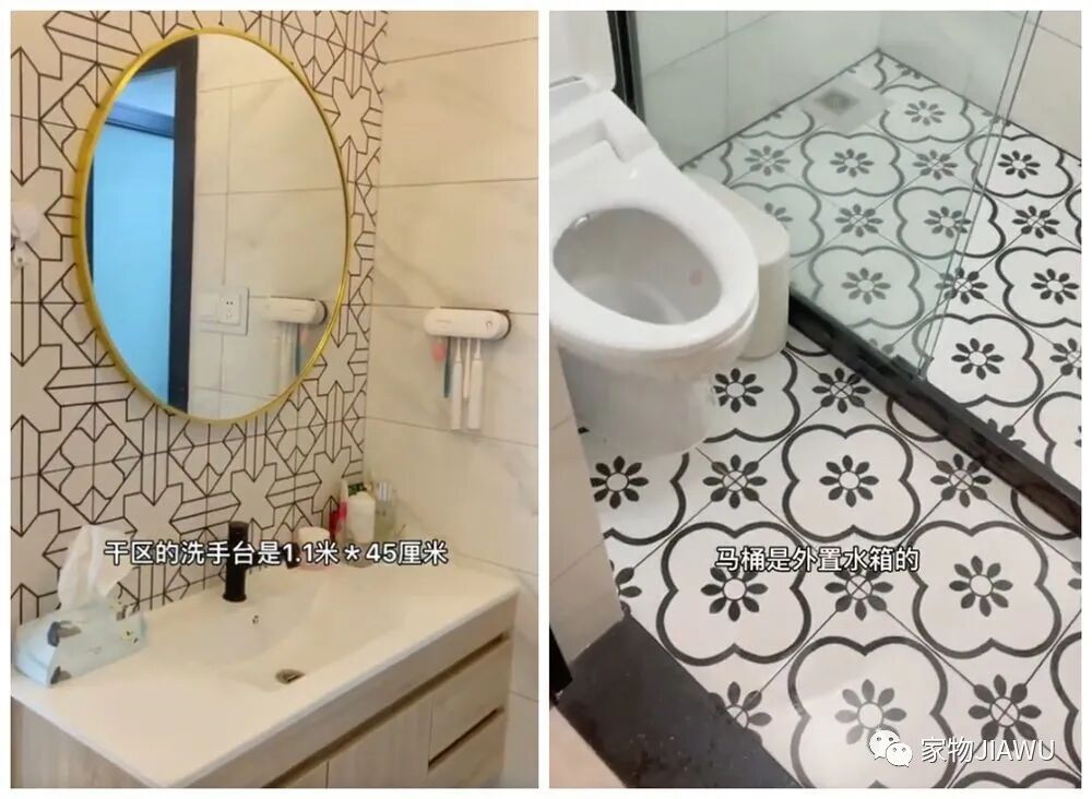 只不过,姑娘觉得有些遗憾的地方是卫生间的瓷砖,花纹选得有些复杂,让人感到些许的杂乱。