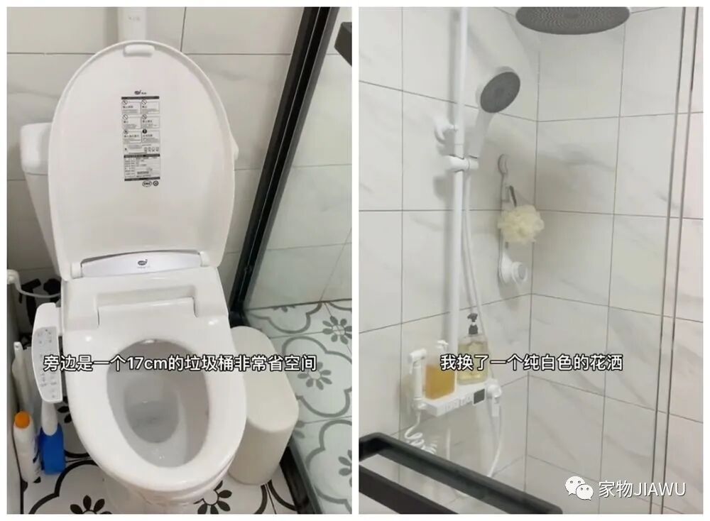 而浴室中,为了减轻这种狭窄的感觉,花洒也被换成了纯白色的,看上去明亮很多。