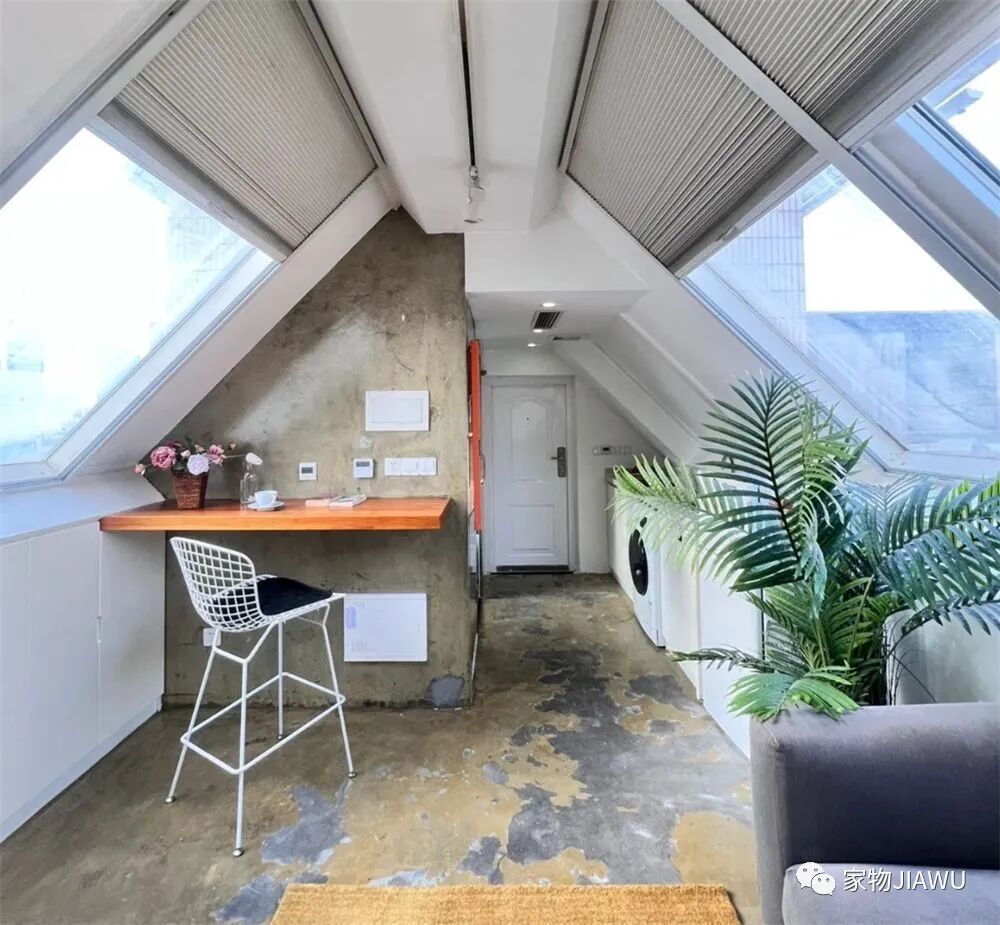 一位上海姑娘,前不久买下了一个超小的顶层阁楼,阁楼面积仅有45平方米,空间不算大,但做成一室一厅的格局,一个人住真的太舒服了。