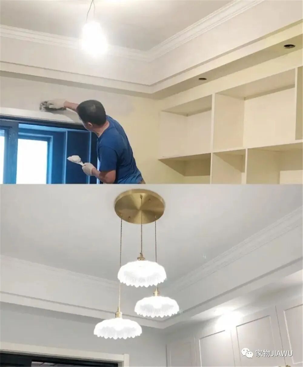 吊顶建议大家不做多层的复杂吊顶,不仅造价比较高,同时藏灰纳垢、压低层高都是它的缺点。