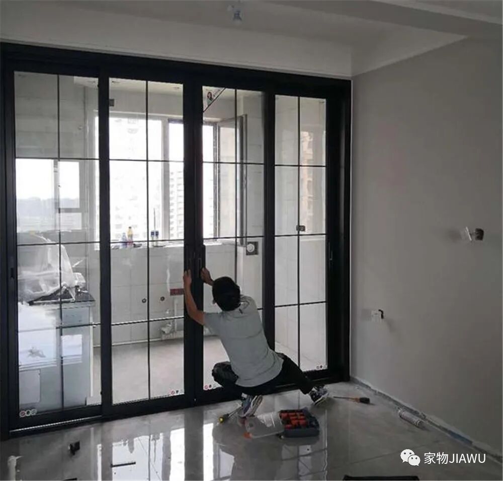 最后,厨房的推拉门建议大家别做地轨的,用时间长了以后藏污纳垢,清洁起来比较麻烦;做吊轨的则更加合适,不会有这些卫生问题的同时,开关门噪音也比较小。