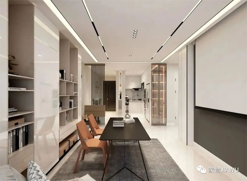 家里的灯具不建议选哪种复杂的水晶吊灯,和吊顶一样,它也会降低层高,同时出现打扫的麻烦,更建议去做吸顶灯,如果层高足够、预算充足的话,无主灯也是个不错的选择。