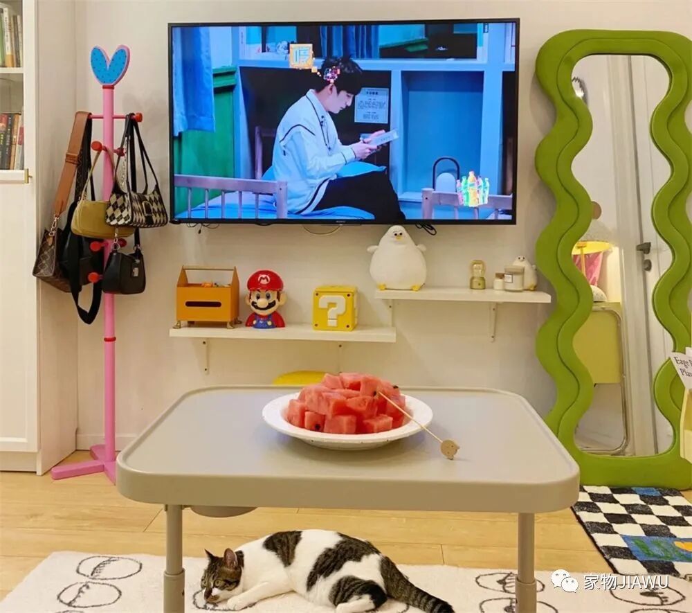 她平日里最常窝在这张沙发上,和自己的猫猫一起看看剧、看看电影,一个人的生活也充满了温馨和惬意感,你别说,还有点小羡慕。
