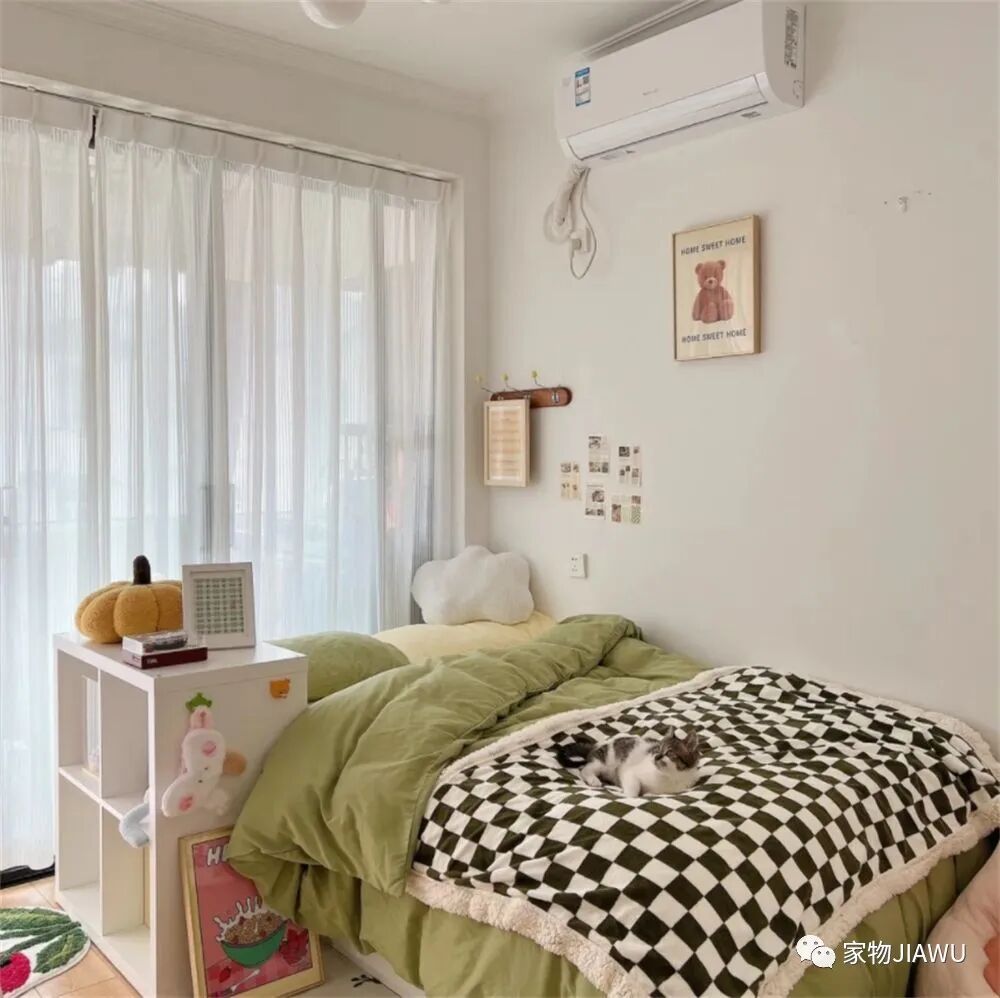 最后一处空间是家里的卧室,这里相对外面来说,采光要更加优秀,卧室直接和外面的小阳台打通,仅用纱帘进行隐私性隔断,看起来是不是还蛮舒服?