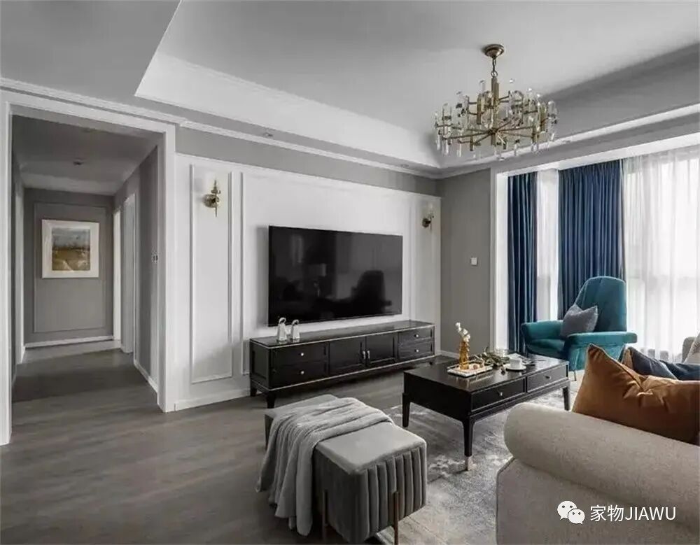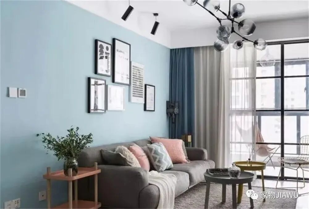 我一直觉得电视背景墙一定不要做太复杂的,尤其是那种大理石、石膏线的,装修预算太高不说,清洁起来十分麻烦,简单涂个乳胶漆,其实就挺显质感的!