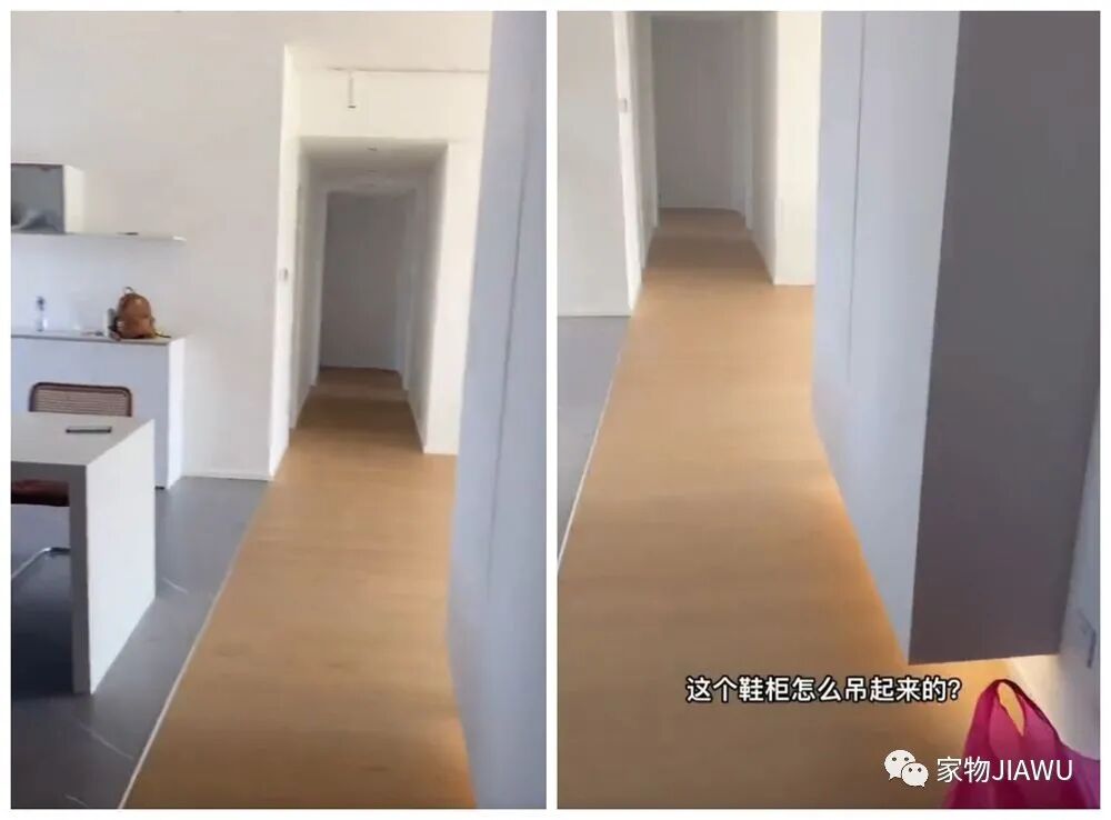 从入门的玄关开始,长辈们就开始“挑眼”了,首先是鞋柜,鞋柜做成了悬浮式的设计,长辈随即觉得有些奇怪,而且觉得这样做不太安全……