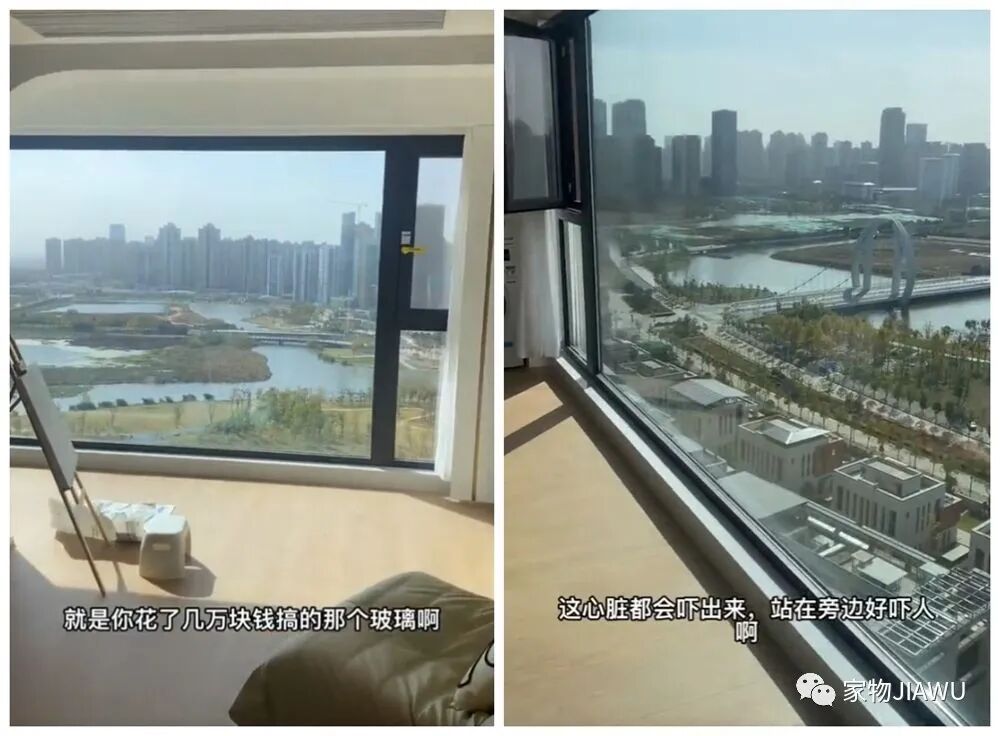 而与客厅相连的阳台上,那块漂亮的落地大窗是姑娘花了几万元做的,但同样被长辈们吐槽不安全、恐高。