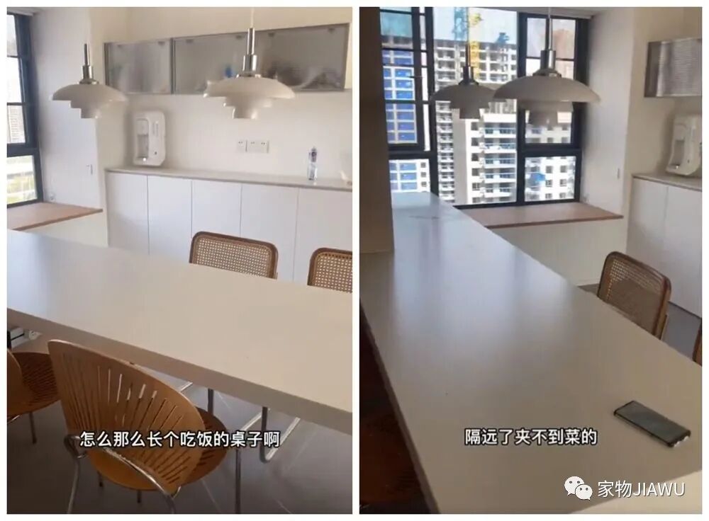 但随即,餐桌的长度也变成了长辈吐槽的地方,觉得桌子太长夹不到菜,而且白色的太容易脏了。