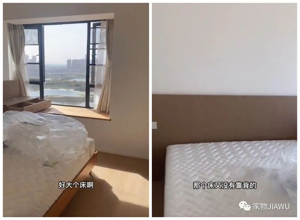 最后, 主卧的床也被吐槽太大、太占空间,且同样没有靠背,这一圈儿下来,想必姑娘也是十分心累了……