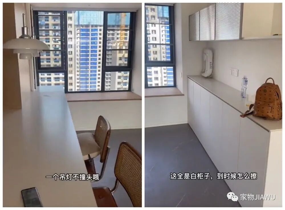 就连餐桌头顶的吊灯,身后的餐边柜,也被吐槽“容易碰头、难以清理”,总之,餐厨房的部分可以说是完全没入长辈们的“法眼”。