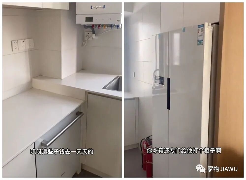 首先,他们认为洗碗机没必要做,自己动手费不了多少事儿,其次,冰箱的部分专门打了柜子,被认为是浪费钱的操作,有点儿心疼这位姑娘了……
