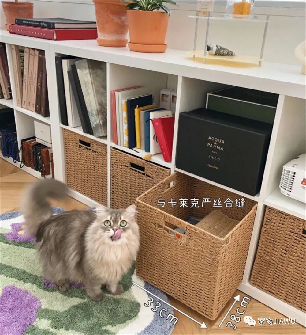 藤编的小篮子,与柜内空间尺寸严丝合缝,平日里收纳一些零散杂物后,放到里面不会显得杂乱,还是蛮实用的。