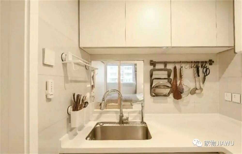 内窗正对水槽,洗碗洗菜的时候,也可以看到客厅内的场景,还是蛮有趣的。