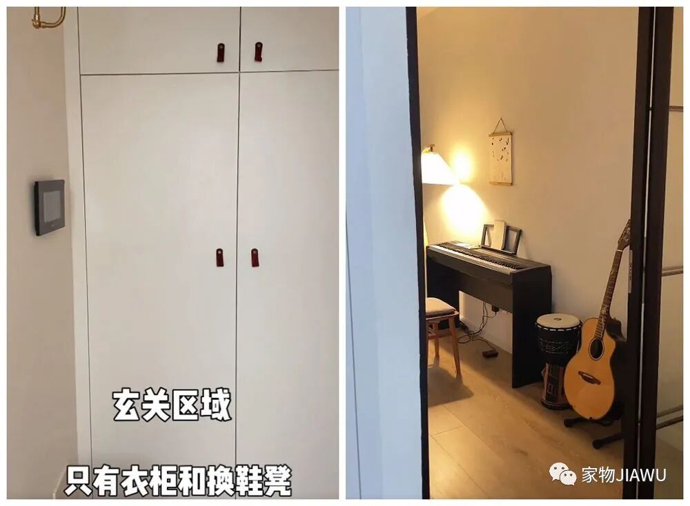 这套房子在买的时候,其实算是附赠了28㎡的空间,入门玄关旁,就是这处附赠的空间。