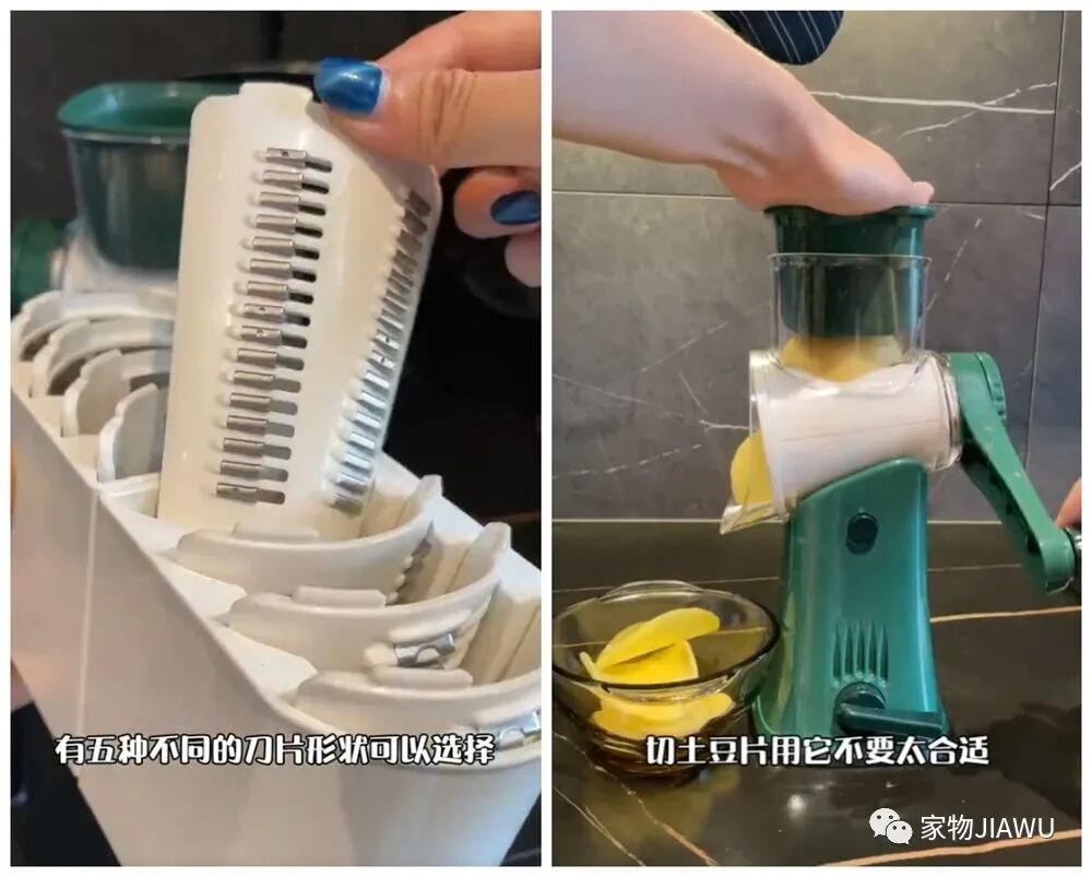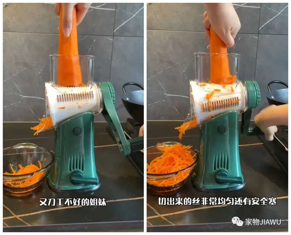 如果喜欢做饭,刀工却不好话,想要快速擦丝、切片的话,比起普通的刨丝刀来说,这种旋转摇把式的刨丝机显得更加实用。