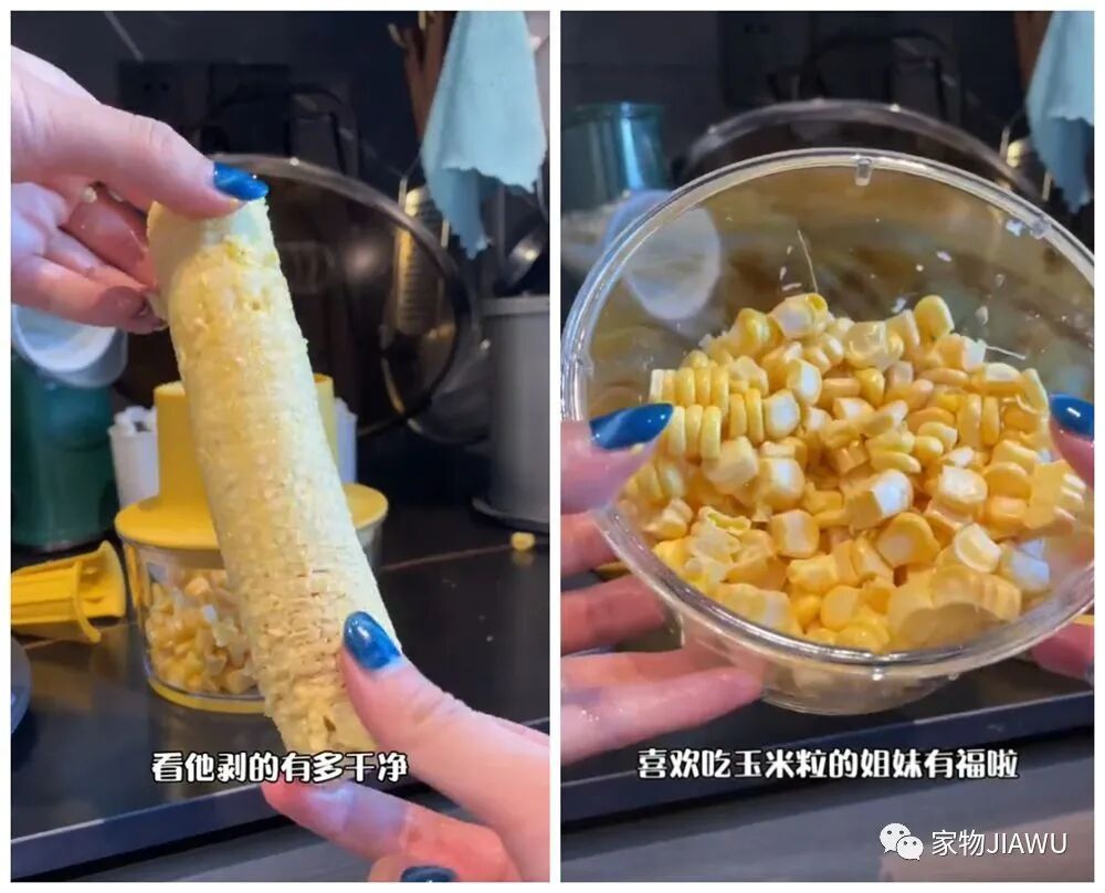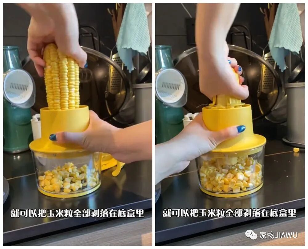众所周知,剥玉米粒是个费时又费事儿的工作,而这个玉米剥粒器则会大大节省这一繁琐的步骤,它里面是向上的锯齿刀刃,轻松旋转,就可以把玉米粒剥在底部的盒子里。