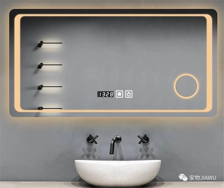 其次,浴室的化妆镜,我一直认为不需要装修成智能的,啥听音乐、看天气功能其实没太大必要,但镜面可以装成加热式的,能有效避免水气影响。