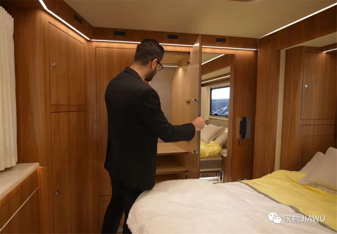 最后,床内侧的柜子是衣柜区域,方便收纳车主的衣物和床品等物品,也算提供了一个可供居住时使用的收纳空间了~