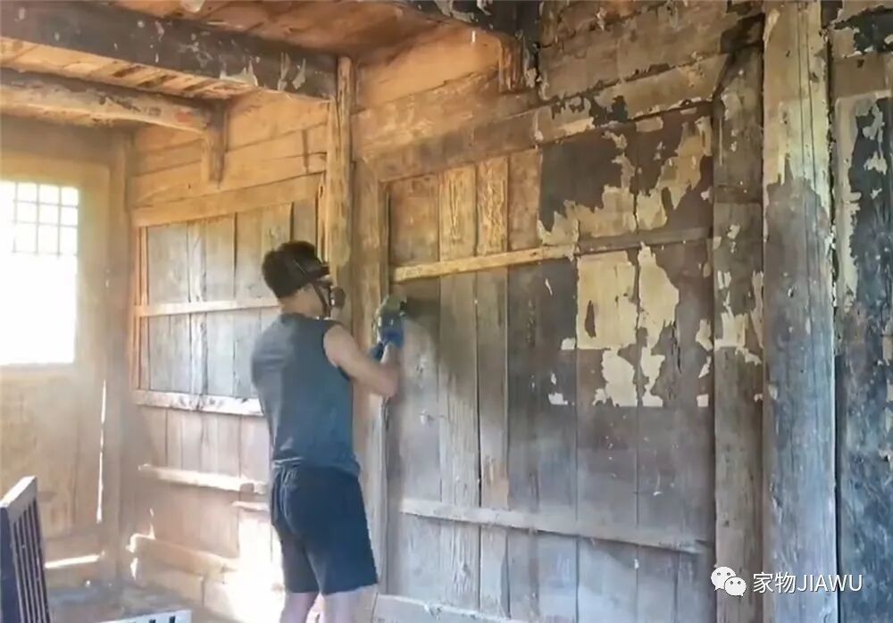 根据上面这些目标,这位小哥开始了这间废旧木屋的改造工作。