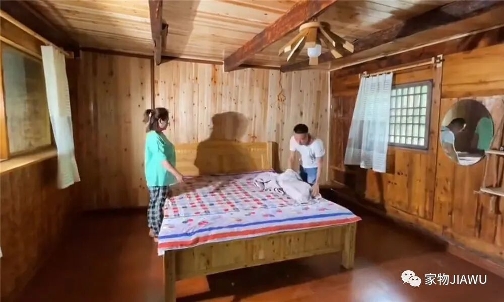 这栋小木屋改造完成后,里面格局没有多大的变化,但看上去真的比之前漂亮了太多,房屋内一扫原本破旧衰败的样貌,反而有种民宿风的感觉。
