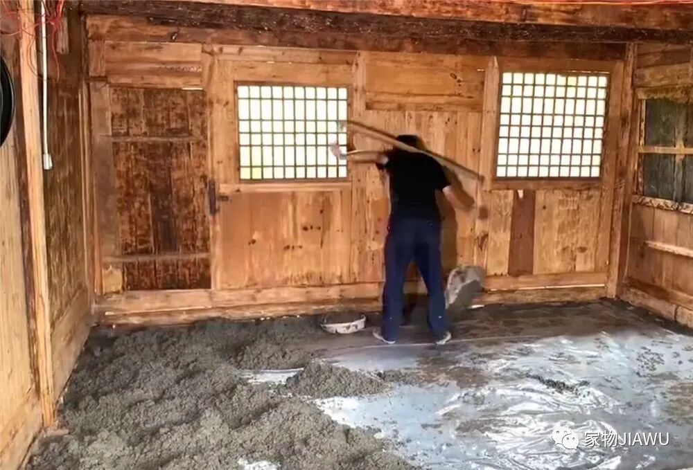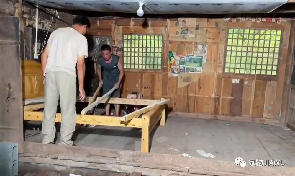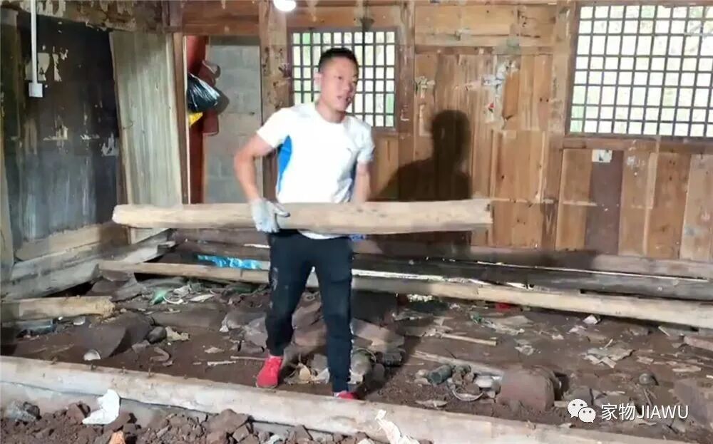 将家具全部清空后,这位小哥将地板全部掀起,而后拿走了在房屋下面早已腐朽、断裂的支撑梁,同时,一些大小不一的碎石也被清空,并简单做了防虫的处理。