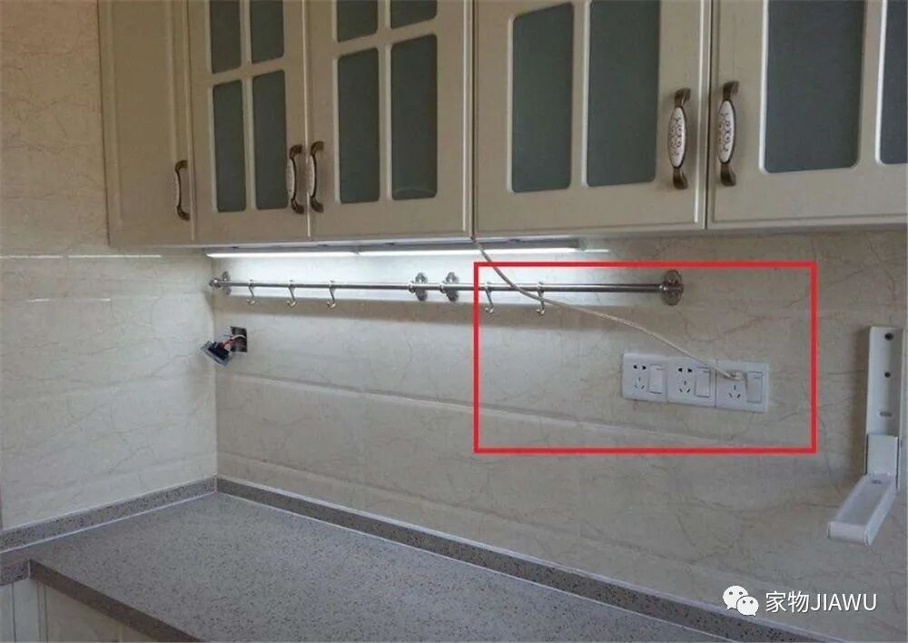 最后,厨房台面上30公分的位置,建议大家预留三个以上的插座,给微波炉、榨汁机、电饼铛等一系列的小厨电使用,越多越好,之前看见有那种滑轨式的插座,也很适合厨房。