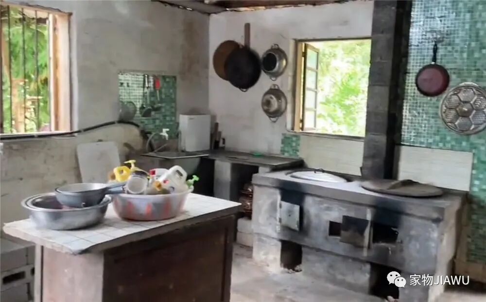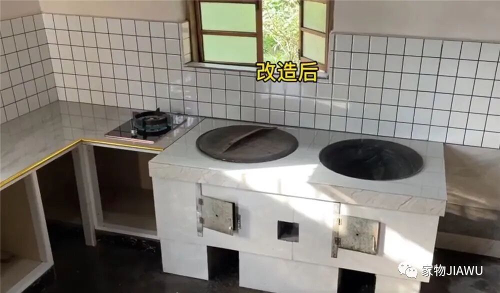 老旧灶台基本上保留了原本的样貌,并没有拆掉重砌,只是将周围的“附属”橱柜,都清拆了个干净。