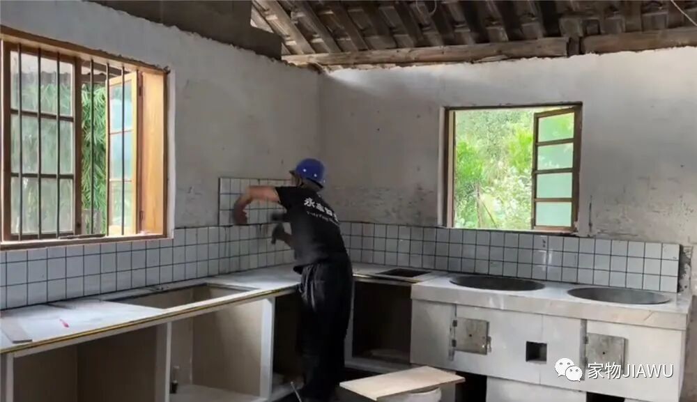 一位小伙回到乡下,对老家的旧房子进行改造,不仅把房屋重新进行加固,还将破旧的灶台重新贴砖、地面重新修整、橱柜重新打造,将破旧厨房变得更加实用。