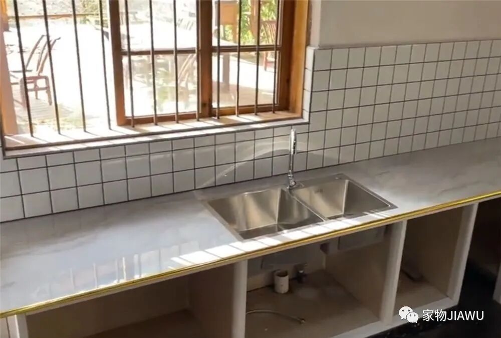 逐渐将瓷砖贴在灶台上以后,看上去比原本的灶台干净多了,而且清洁打理起来也要方便很多,毕竟原本的水泥面很容易留存油污,无法清理。