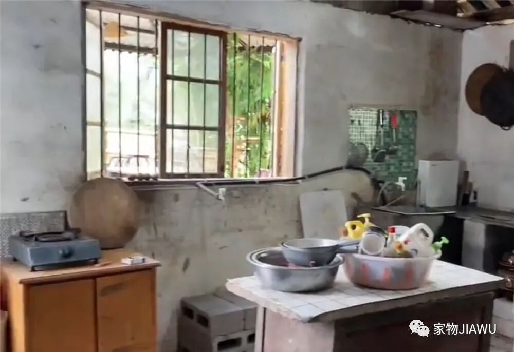 与此同时,也能看到厨房内的置物和收纳空间完全不足,除了灶台旁边以外,没有多余的橱柜储物空间,各种物品都堆在明面儿上,显得乱糟糟地。