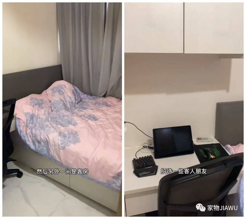 它的旁边自带一间小卫生间,是这间小屋子的专用厕所,同时,屋内的床榻也采用了地台式的设计,底部增加收纳区,平日里可以收纳家居杂物。
