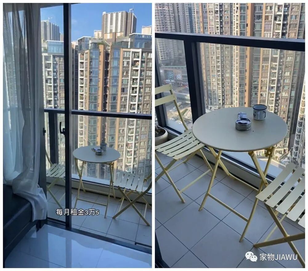 阳台则是开放式的设计,并未封闭融入室内,摆上小茶桌和折叠椅后,成为一家人舒适的休闲区,在这里吹吹风、喝喝茶,想必也十分惬意。